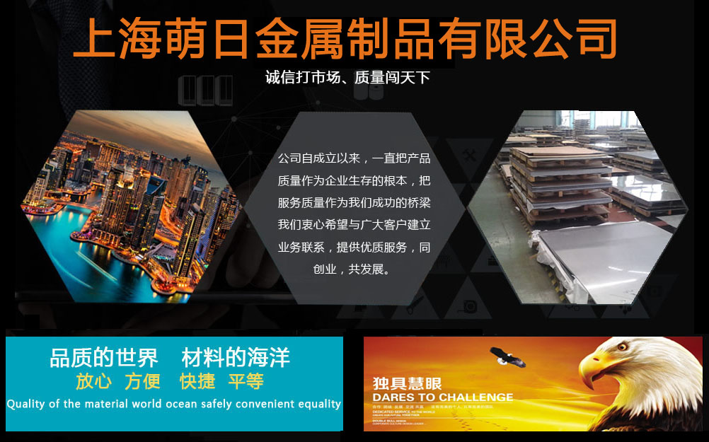 上海萌日金屬制品有限公司一直致力于為國內(nèi)各大中型國有企業(yè),外資企業(yè),民營獨(dú)資企業(yè),模具制造企業(yè),機(jī)械加工企業(yè),石油化工企業(yè)及器械企業(yè)等供應(yīng)各種特種鋼材,進(jìn)口/國產(chǎn)鋁合金,不銹鋼,合金結(jié)構(gòu)鋼,42CrMo鋼板,35CrMo鋼板,40Cr鋼板,合金圓鋼,中厚板,鍛件,法蘭,鋼帶,軸承鋼,易切鋼,不銹圓鋼,合金管,矩形鋁管,無縫鋁管,鋁管,工業(yè)鋁管進(jìn)口及國產(chǎn)方胚/鋼錠/鋁錠,應(yīng)用于機(jī)械,機(jī)電,造船,工程,煤礦,紡織,電力,鍋爐, 汽車工業(yè)等各個(gè)領(lǐng)域。我公司可以根據(jù)客戶對特殊材料的要求進(jìn)行材料和產(chǎn)品的定制,可按ISO,ANSI,JIS,DIN,GB等標(biāo)準(zhǔn)定制,我們將本著"誠實(shí)守信,合作共贏,長期合作"的理念與新老客戶一起進(jìn)步發(fā)展。